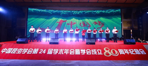此外,为了纪念学会成立80周年,10月12日晚举办了以“忆峥嵘岁月 展会员风采”为主题的文艺晚会。晚会由重庆师范大学音乐学院徐静老师和中国科学院国家动物博物馆张劲硕馆长主持,文艺晚会分序曲、新时代∙虫逢、新使命∙担当、新征程∙出发、尾声五章,通过22个节目展现了中国昆虫学家的风采和对昆虫学事业的热爱。