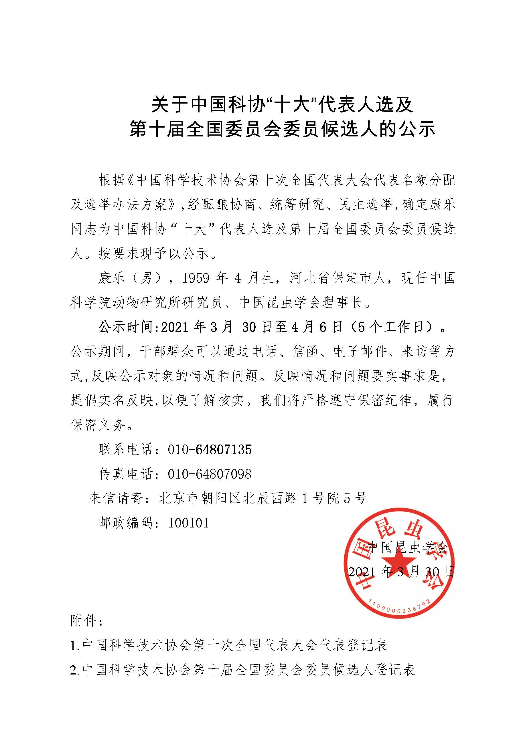 关于中国科协“十大”代表人选及第十届全国委员会委员候选人的公示