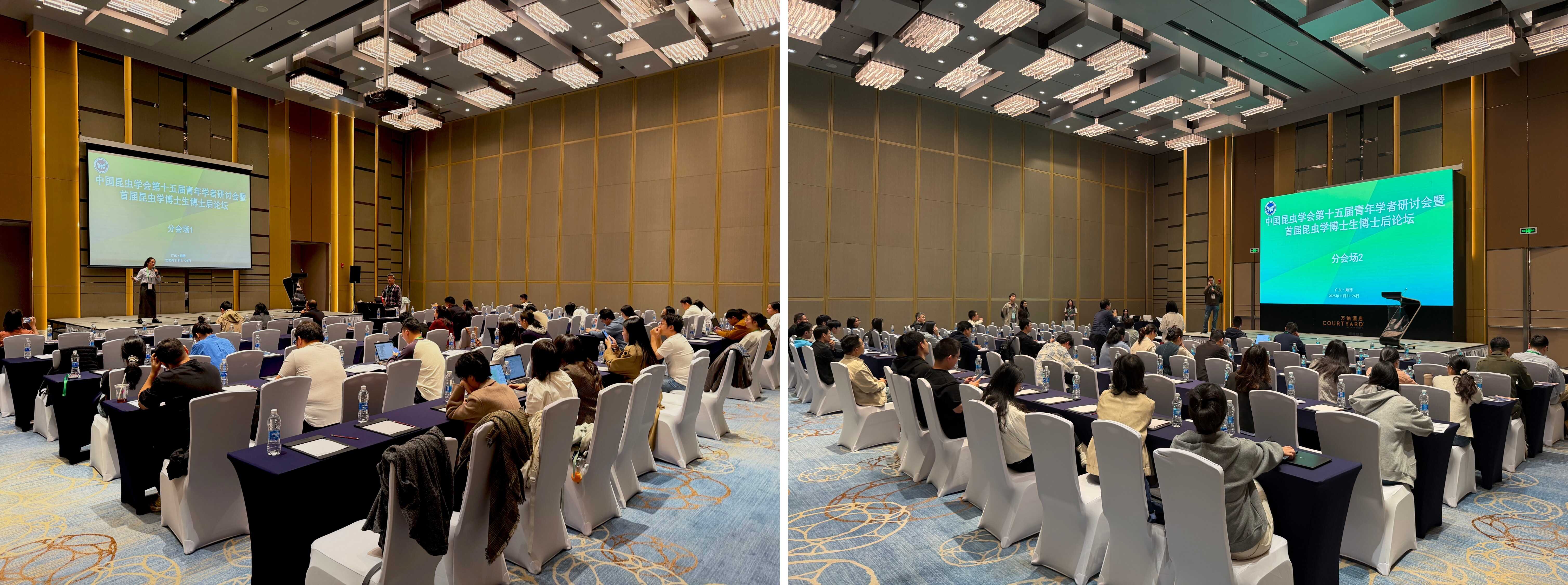 本次会议设立了针对青年教师、博士后和博士生的专题分会场,特别是首次将博士生和博士后这一充满潜力和创造力的群体正式纳入论坛框架,旨在促进青年昆虫学工作者在各自擅长和感兴趣的细分领域与同行进行深入、充分的研讨。分会场共安排了41场专题报告,分两个会场同步进行,报告内容涵盖昆虫进化、发育、系统发育、免疫、生殖、化学生态等多个研究方向,为与会者提供了良好的交流机会。此外,会议还专门收集了所有报告人的个人简介,既便于会议期间的深入交流,也为博士生和博士后的求职创造了更多机会。