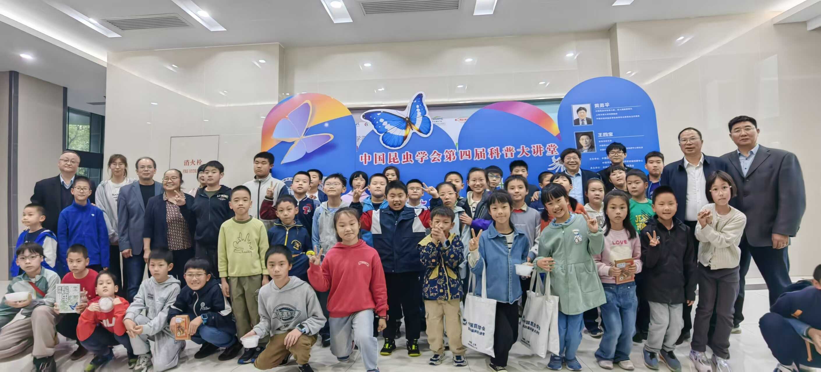为全面落实《中国科协关于新时代加强学会科普工作的意见》精神,进一步打造中国昆虫学会科普品牌,传播科学思想、倡导科学方法,2026 年 4 月 11 日下午,中国昆虫学会第四届科普大讲堂在上海昆虫馆成功举办。本次大讲堂以 “科技与未来 —— 昆虫与人类健康” 为主题,特邀中国昆虫学会第八、第九届副理事长、上海交通大学黄勇平教授,中国昆虫学会副理事长、中国科学院分子植物科学卓越创新中心王四宝研究员担任主讲嘉宾。中国昆虫学会理事长戈峰研究员、中国科学院动物研究所所长乔格侠研究员、中国科学院分子植物科学卓越创新中心党委副书记张余研究员、中国昆虫学会常务副秘书长孟晓星、中国昆虫学会科普工作委员会主任魏永平等出席活动,中国昆虫学会副主任委员、上海昆虫博物馆馆长殷海生主持。来自上海市的 150 名中小学生及家长现场参与。活动图片直播浏览量达到4.6万。